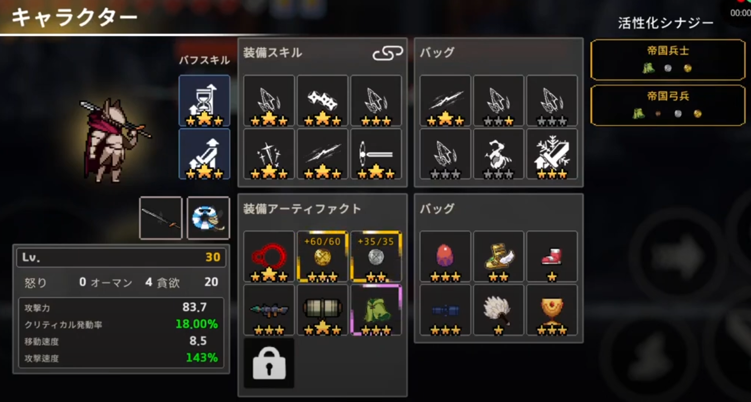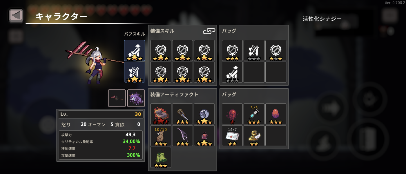 遺物やシナジーなどの効果はリアルタイムで反映される。