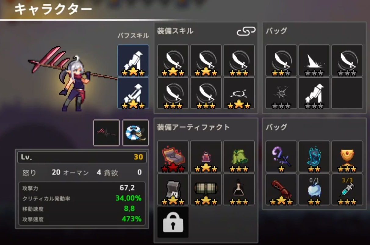 【不具合】★3遺物「暗殺者の死亡宣告」のダメージ計算に不具合があり、クリティカルが100%を超過するとダメージが異常に高くなる様子。こちらとの相性が良い。参考動画(Discord)