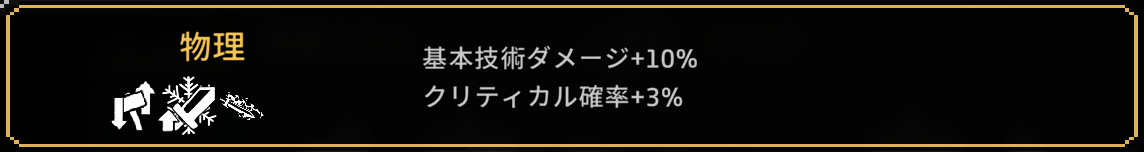 | 2~3 | 攻撃力+5% クリティカル確率+3% |