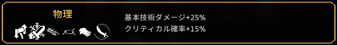 | 6 | 攻撃力+25% クリティカル確率+15% |