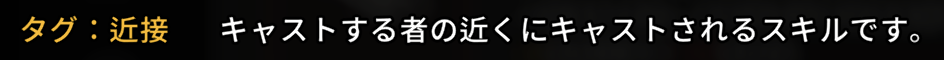 | - | 【タグ:近接】キャストする者の近くにキャストされるスキルです。 |