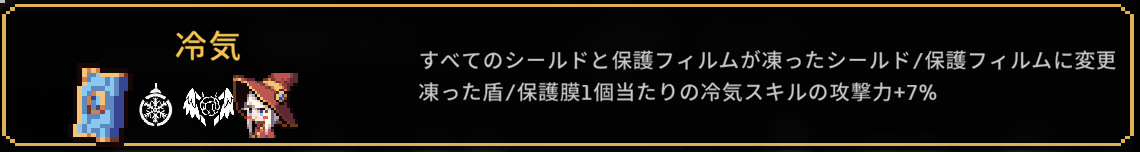 | 6 | スキルシールド+1 すべてのステージごとにスキルシールドを最大値に回復します。 神聖バフ効果の5倍増加 |