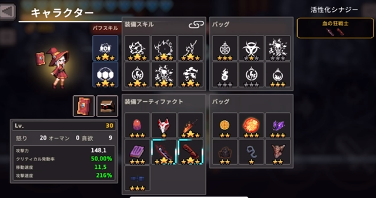 ・シナジー「血の狂戦士」(基本技術のダメージ量+50%)